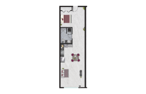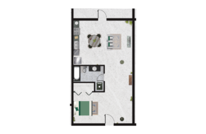 If you are looking for traditional separation between your living and sleeping space, then this floor plan with a dedicated, private bedroom is for you! Ranging from 491-550 sq ft., the monthly rent will be $1,050-$1,175/month.